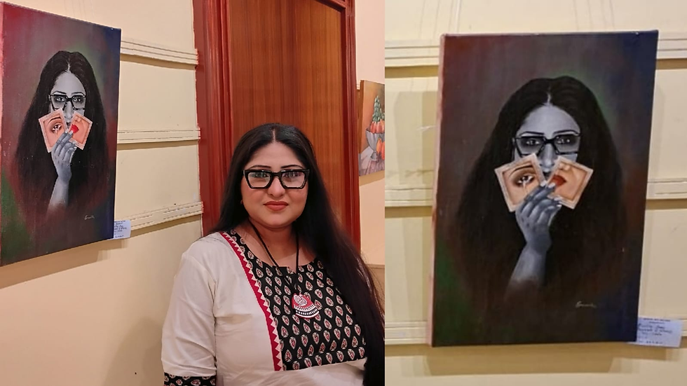 At the ongoing Bengal Art Factory's Summer Edition, a contemplative hush seems to gather around one particular canvas — Soumita Saha’s self-portrait Fragments of Silence. Amidst a constellation of participating artists, this work quietly asserts itself as the exhibition’s centre of attraction, not through spectacle, but through a layered introspection that invites viewers to linger, decode, and return.
